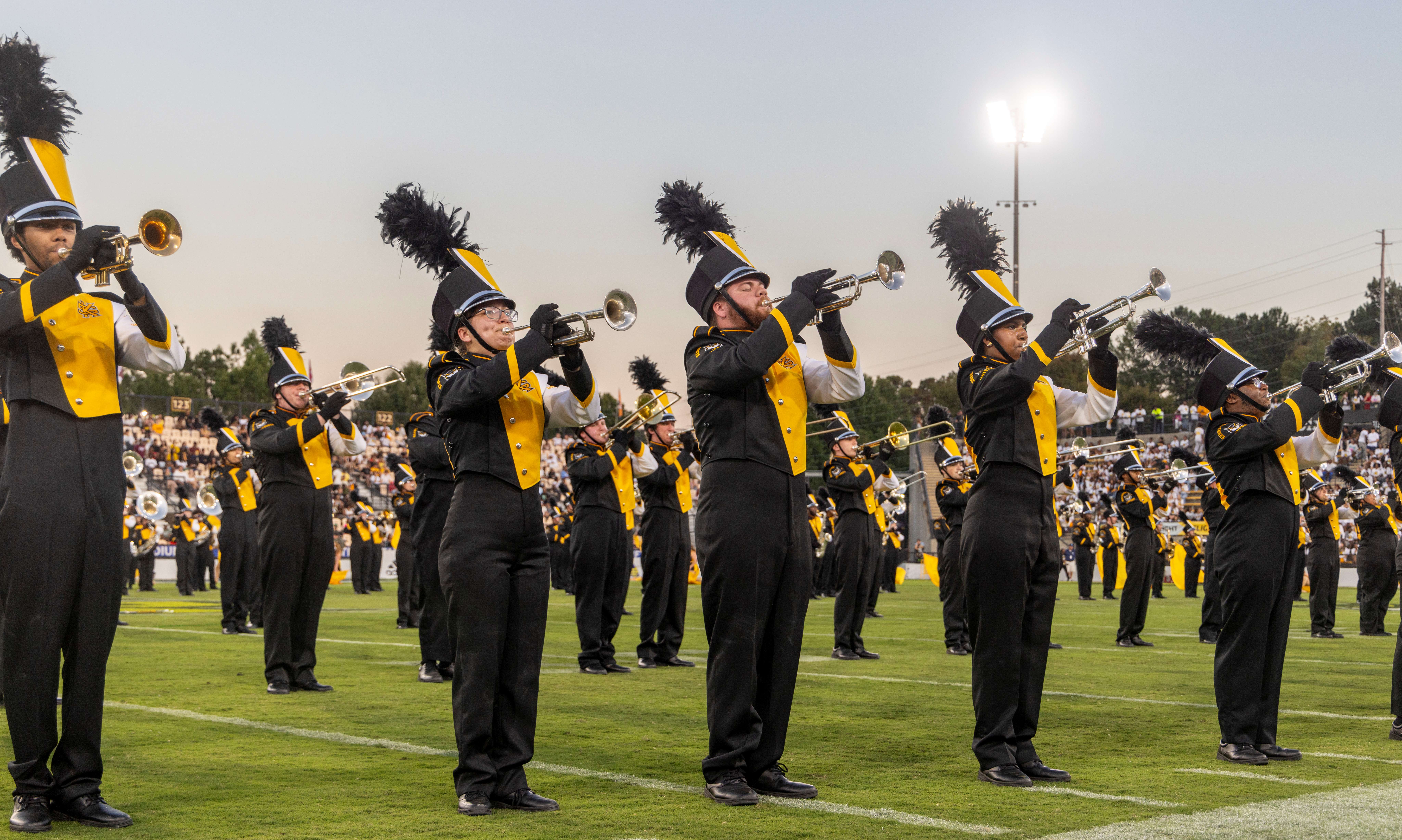 Western Michigan University’s Bronco Marching Band arrives with more than a century of tradition and a reputation as one of the largest marching bands in the Mid-American Conference. Under the leadership of Dr. Trey Harris, the 275-member ensemble will bring their Midwest spirit to Myrtle Beach among six buses. Along with their signature precision and energy, the Marching Broncos are known for their distinctive Western-influenced musical style, made popular in classic Western films. Fans can expect to hear their popular Bronco fight song composed by WMU alumnus Walter Gilbert and the Bronco War Chant composed by alumnus Chase Bethea. The band also proudly features a South Carolina native, Ava Tervulli of Summerville, S.C.